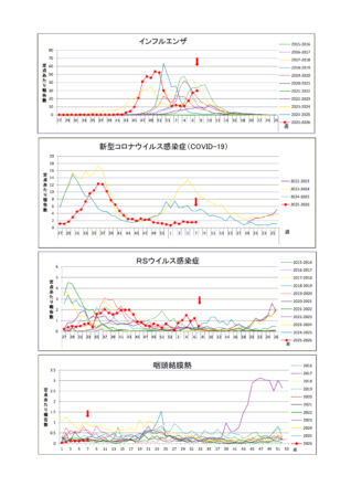 | 感染者数 | 増減数 | 定点当り | 感染者数 | 増減数 | 定点当り | |