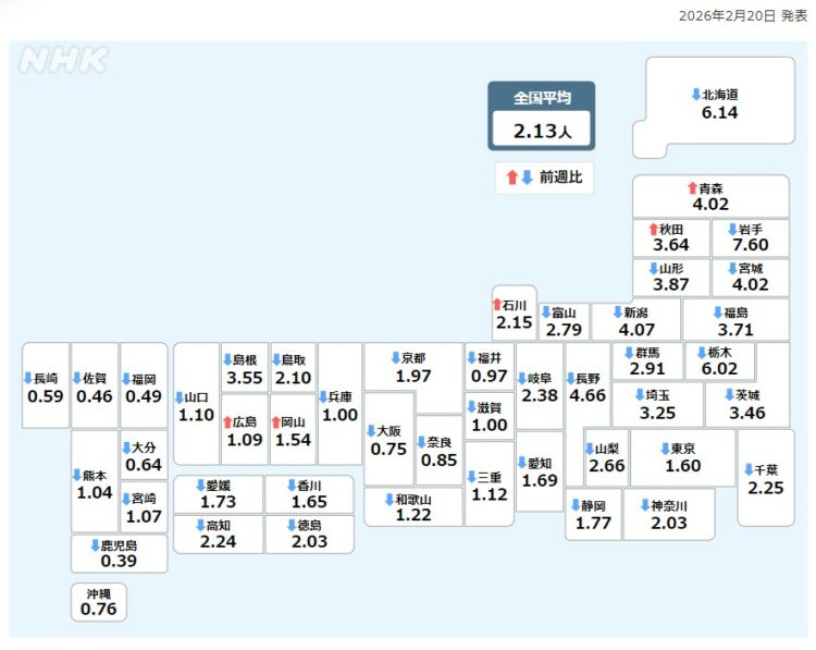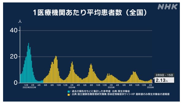インフルエンザ患者数 前週からわずかに減少も 多い状況続くなし (02/20/2026NHK)