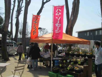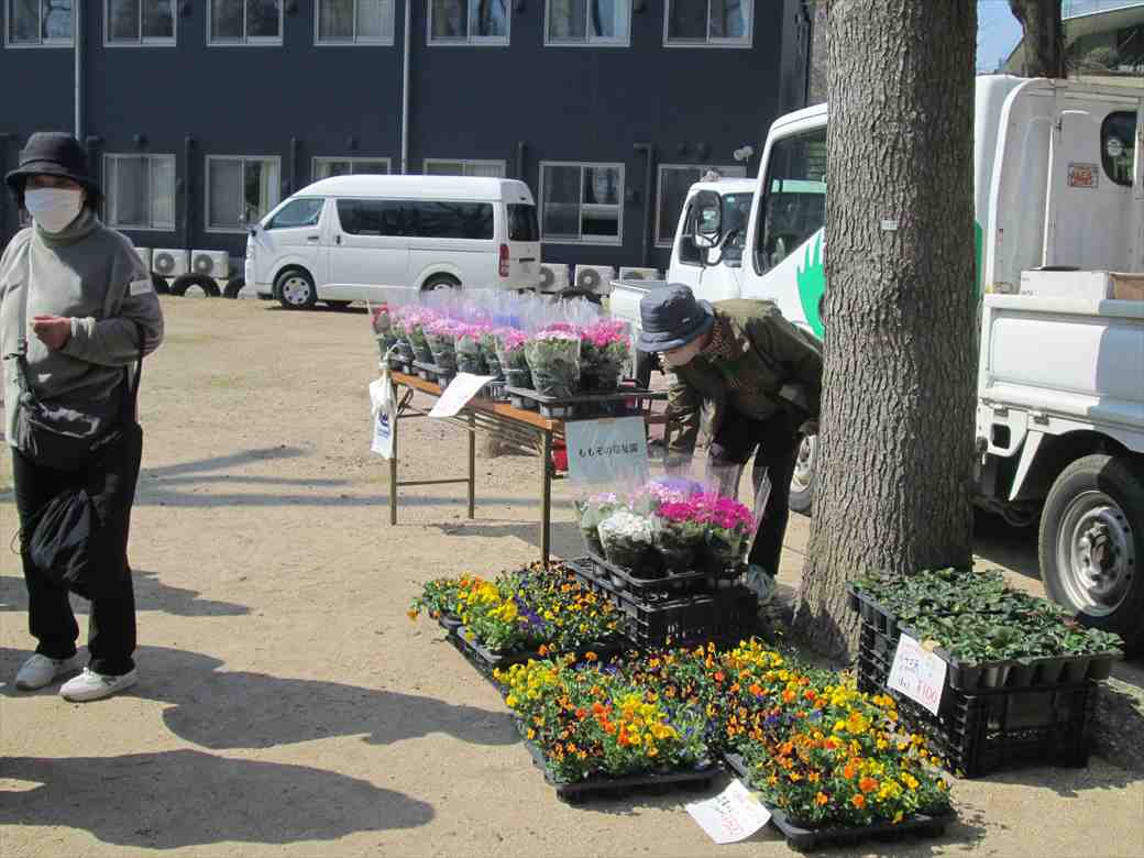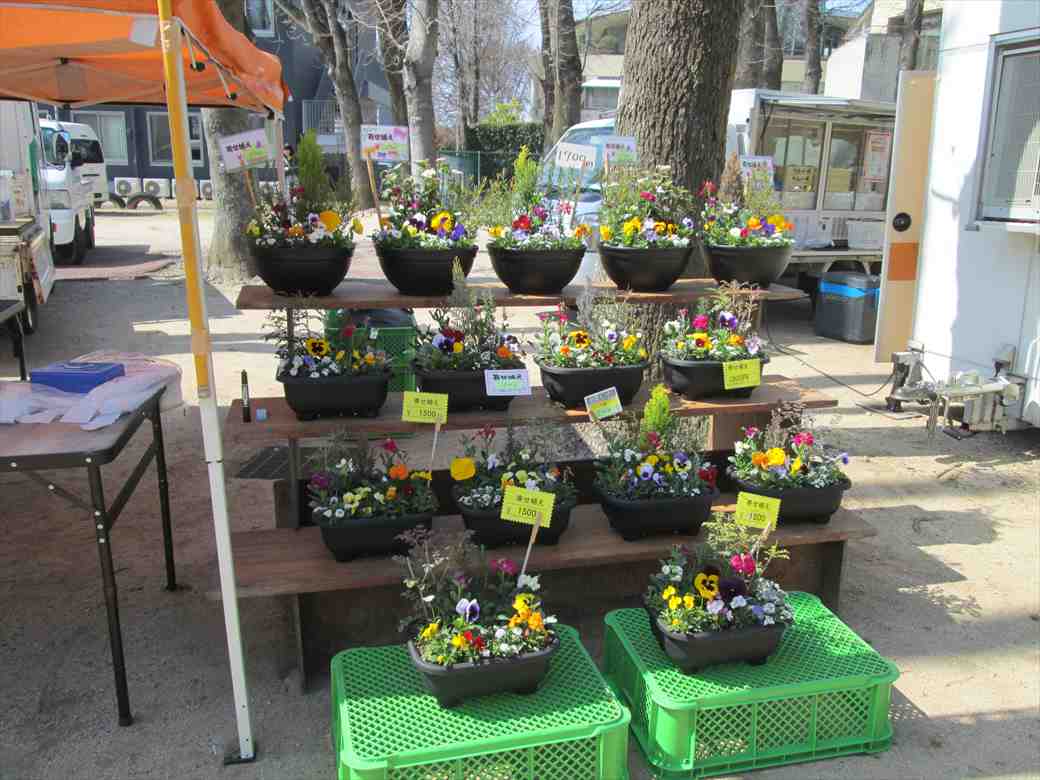 外ではお花の苗やお花がたくさん来ていました。日差しが暖かいので外のテーブルでゆっくりされている人もおられます。