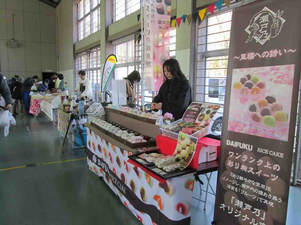 焼菓子のお店もあります。いろいろなクリームの入った大福屋さんもあります。米粉で作ったシフォンケーキがふわふわでとてもおいしいです。和菓子屋さんのいちご大福がとてもおいしいです。