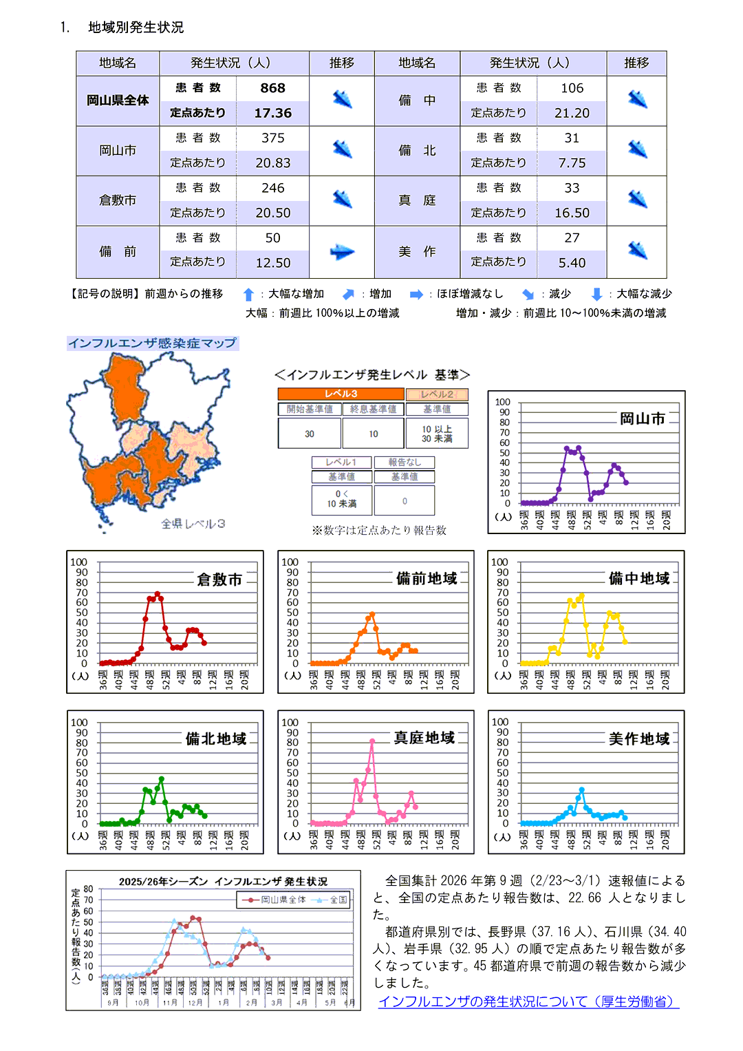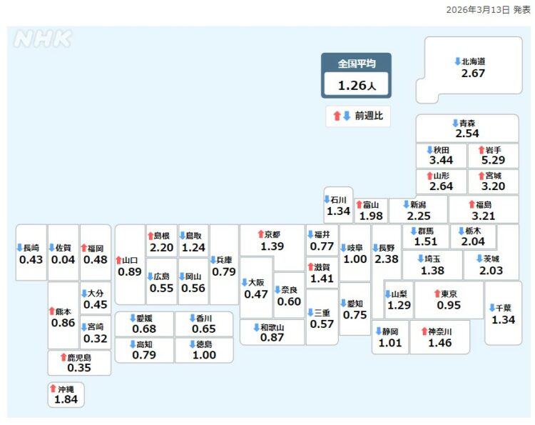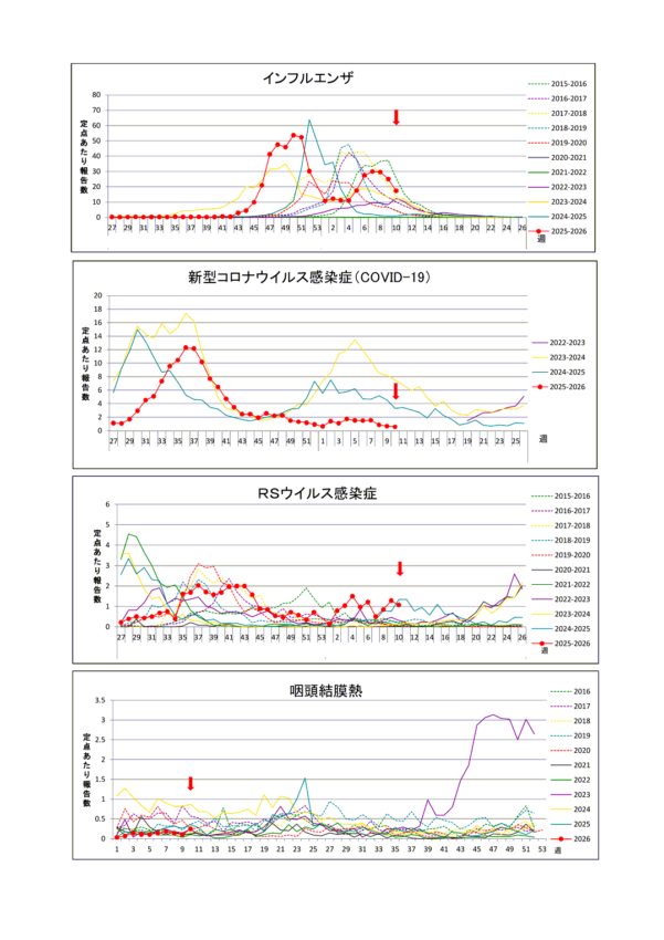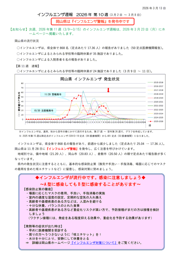 新型コロナウィルス感染症に関する情報リンク〜2026.03.13〜定点把握10週〜全国4,783人岡山28人:全国・岡山県ともに減少!