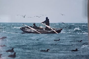 漁師さんたちはアビ漁の季節になると、アビに恐れられないように手漕ぎ船で近づき、人に慣れさせ、アビが慣れてきたころを待って本格的な漁を始めます。