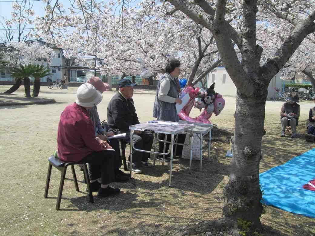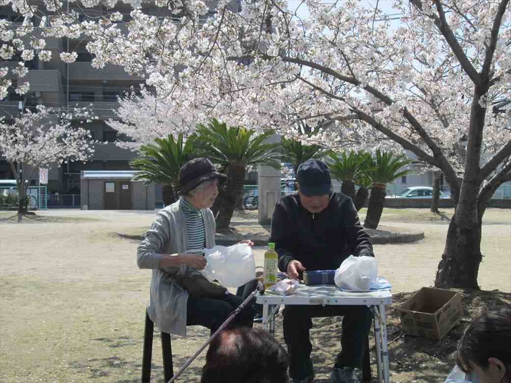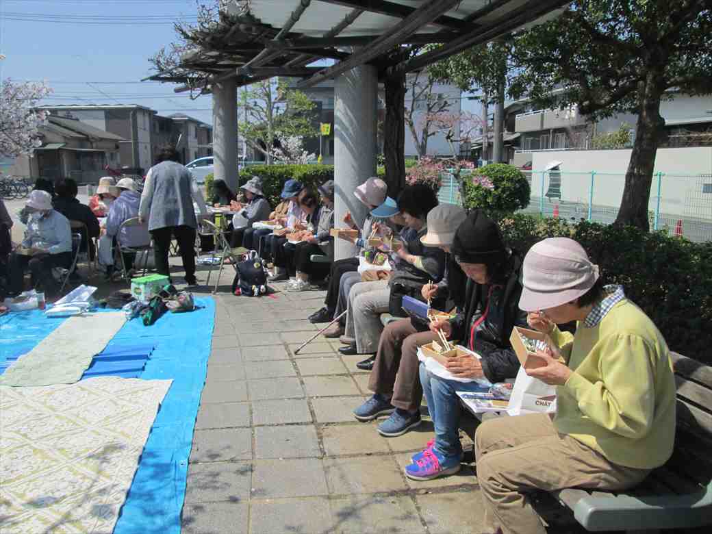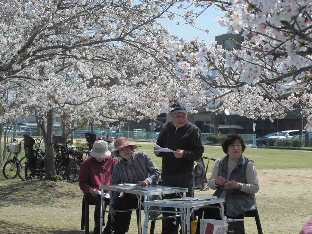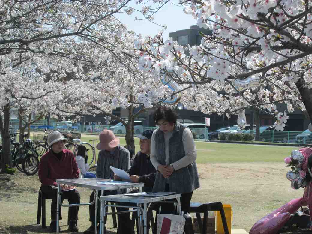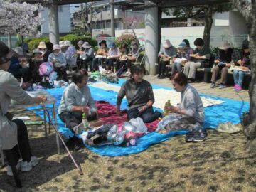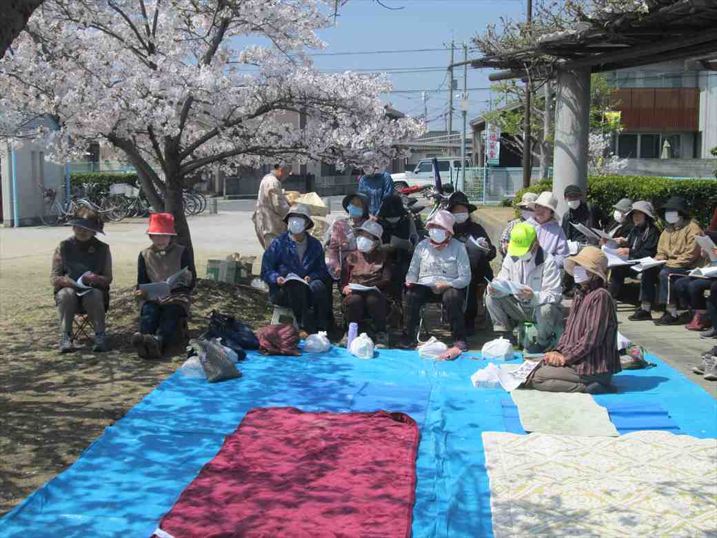 その後、時間のある方はお弁当を食べてワイワイとおしゃべりして楽しく過ごして帰りました。桜の花も満開でいいお花見となりました。少しの間でしたが話に花が咲きあっという間の時間でした。又、来年もしっかりお花見が楽しめることを期待して笑顔で総会を終了しました。(№3124)