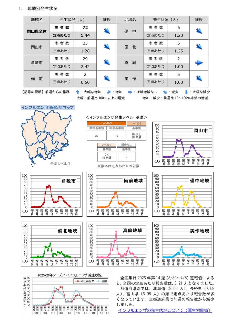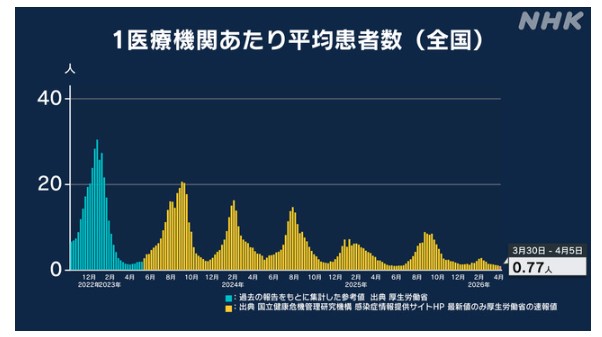新型コロナウィルス感染症に関する情報リンク〜2026.04.10〜定点把握14週〜全国2,890人岡山17人:全国・岡山県ともに減少!