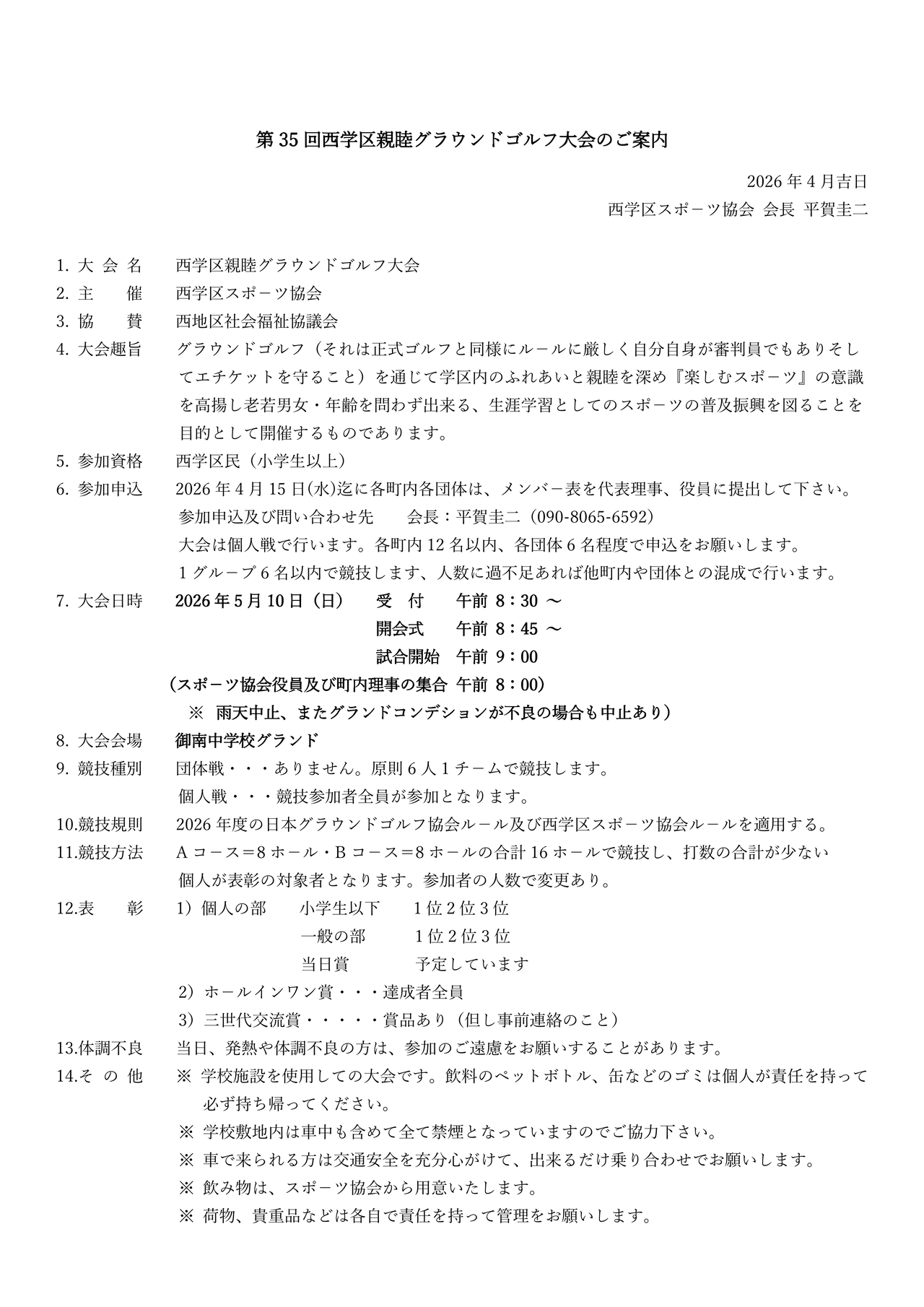西学区スポーツ協会が2件のイベントを計画実施の予定~5/10~