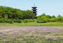 春の景色など18・・~ 五重塔とレンゲ つつじ ショウブ ヤマボウシ 水車小屋 池の鯉 鯉のぼり 芝さくら など ~(515)