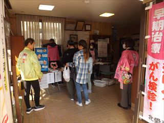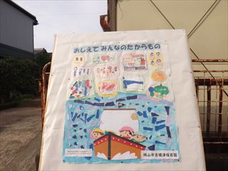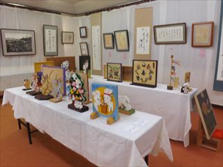 鯉山コミュニティハウス内では、婦人会によるバザー、愛育委員は健康チェック、かな書道、写真、絵手紙、吉備津神社再建600年神社パネル、日本画、絵画、生花、トールペイントの展示がありました。道路では板倉宿まちかど書道展で小学生、幼稚園児、保育園児の作品展示。