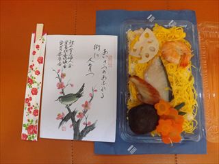 お寿司をいただく 投稿日:2026年3月1日 鯉山学区婦人会、栄養改善協議会、愛育委員会の皆さんが早朝より鯉山コミュニティハウスで作られて、一人暮らしの高齢者に配られています。私も毎回いただいています。いつも当地区にお住いの池上澄子さんの絵と一言メッセージが書かれた表紙が素晴らしいです。私の店に毎回飾っています。 鯉山学区連合町内会 会長 練尾賢治 カテゴリー:トピックス