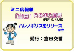新着情報 2026年02月20日 ☆おやこクラブ☆キッズパーク♪ 2026年02月18日 映画で若き時代に戻ろう(かがやきクラブからのお知らせ) 2026年02月16日 操明桜祭り 準備着々と 2026年02月14日 1年生「昔遊びチャレンジ」のお礼 2026年02月13日 ミニ広報紙「倉田」R8年2月号(倉田交番) 2026年02月12日 操明スポーツ少年団ソフトボール部 新春マラソン大会 2026年02月10日 操明学区も雪景色 2026年02月8日 また来ました 詐欺の入口 2026年02月6日 第28回操明スポ少バレーボール部交歓大会 2026年02月4日 第35回 操明みんなの食堂 2026年02月2日 野菜の収穫(1月30日) 2026年01月31日 今日も元気に 2026年01月29日 岡南大橋東詰め道路 改良工事始まる 2026年01月27日 地域紹介「水に囲まれた操明学区」 2026年01月25日 今年も来ました! ユリカモメ 2026年01月23日 操明学区 新春互例会 2026年01月21日 1年生 昔遊びにチャレンジ 2026年01月19日 Windows10延命 ~セキュリティ更新を1年間延長~ 2026年01月17日 早くも梅が咲いている 2026年01月15日 新年のあいさつ ~年賀状~ 2026年01月13日 プレゼント用に折紙を準備 2026年01月11日 イペーの花が咲きました 2026年01月9日 正月を飾る ~しめ飾り~ 2026年01月7日 ミニ広報紙「倉田」令和8年1月号(倉田交番) 2026年01月5日 正月を飾る ~ 門松 ~ 2026年01月3日 初日の出 2026年01月1日 年賀状(操明学区連合町内会長) 2025年12月31日 R7年振り返り 2025年12月29日 防犯カメラを設置(下藤崎第2町内会) 2025年12月27日 ひとり暮らし高齢者にお弁当配布 新着情報一覧