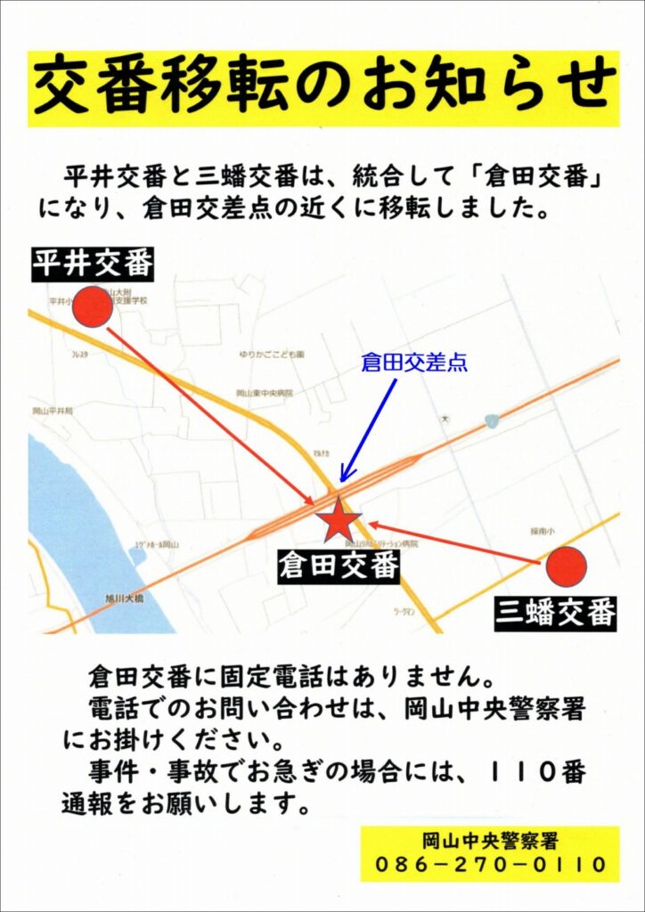 倉田交番 岡山リハビリテーション病院の向かい側(西側)