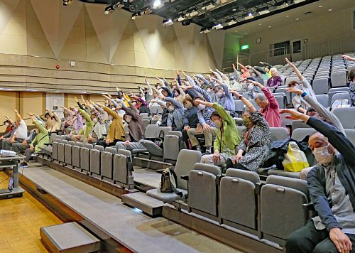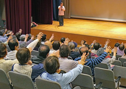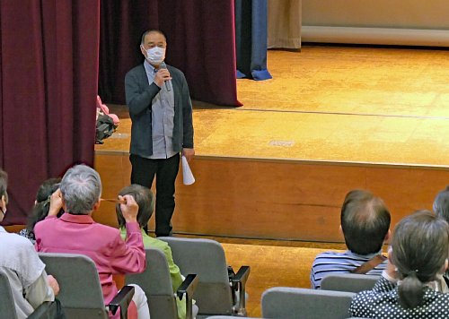 操明かがやきクラブ(老人会)で、3ブロック(藤崎上、藤崎下、桑野・沖元)合同の総会が4月24日(木)に岡山ふれあいセンター大ホールで行われました。
