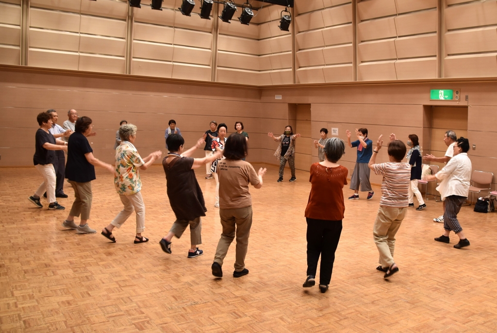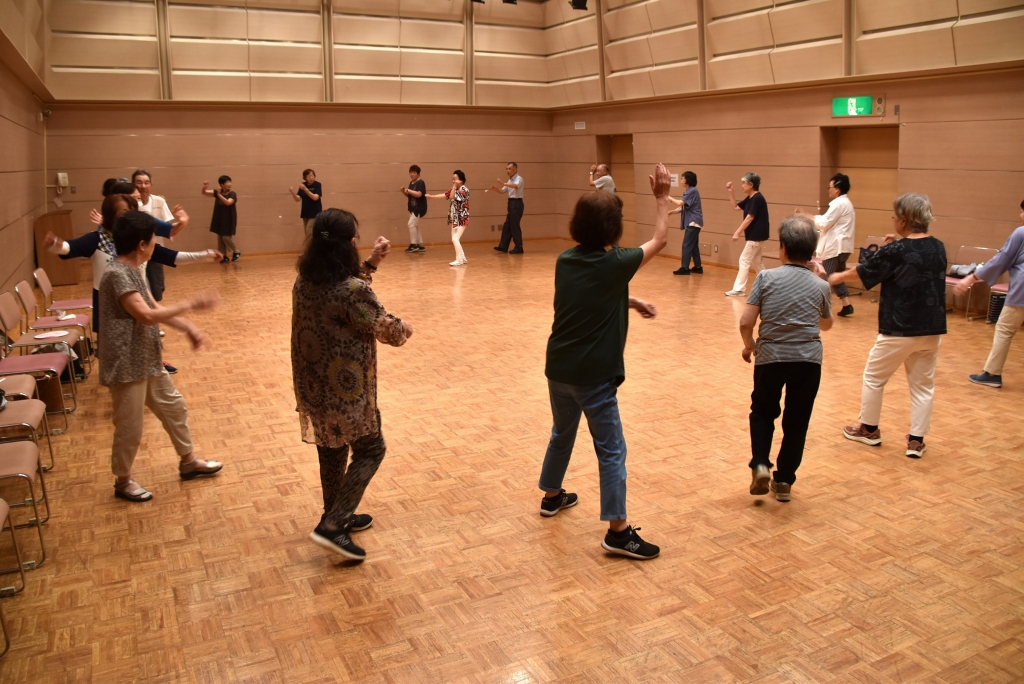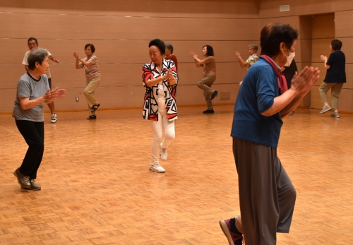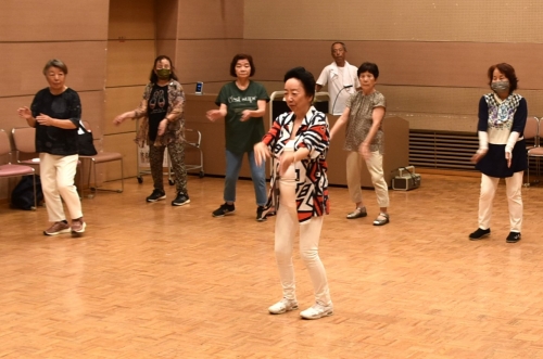 8月1日、ふれあいセンター小ホールで操明かがやきクラブなど、操明学区・操南学区の有志が盆踊りの練習をしました