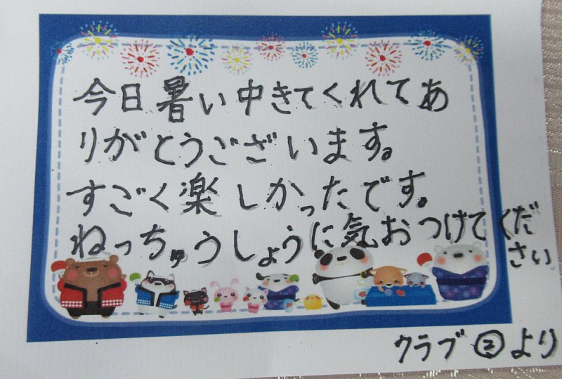 教室②の子ども達からのお礼のカード