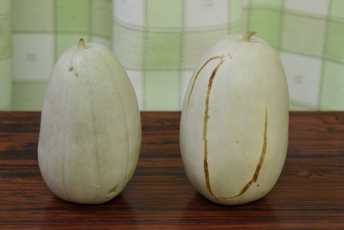 ※ 「ウリ」と名が付く野菜には、マクワウリのほかに「白ウリ」があります。白ウリはキュウリの仲間で一般に漬け 物として利用されています。白ウリと対比するときマクワウリは味ウリと呼ばれます。