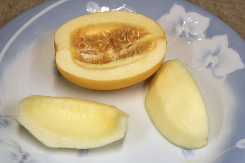 マクワウリはメロンの元祖とも呼ばれる伝統野菜で、昭和の中頃までは当地でもほとんどの家(農家)で栽培されていて、スイカともに夏の味覚の1つでした。しかし最近はスーパーマーケットでもほとんど見かけなくなりました。