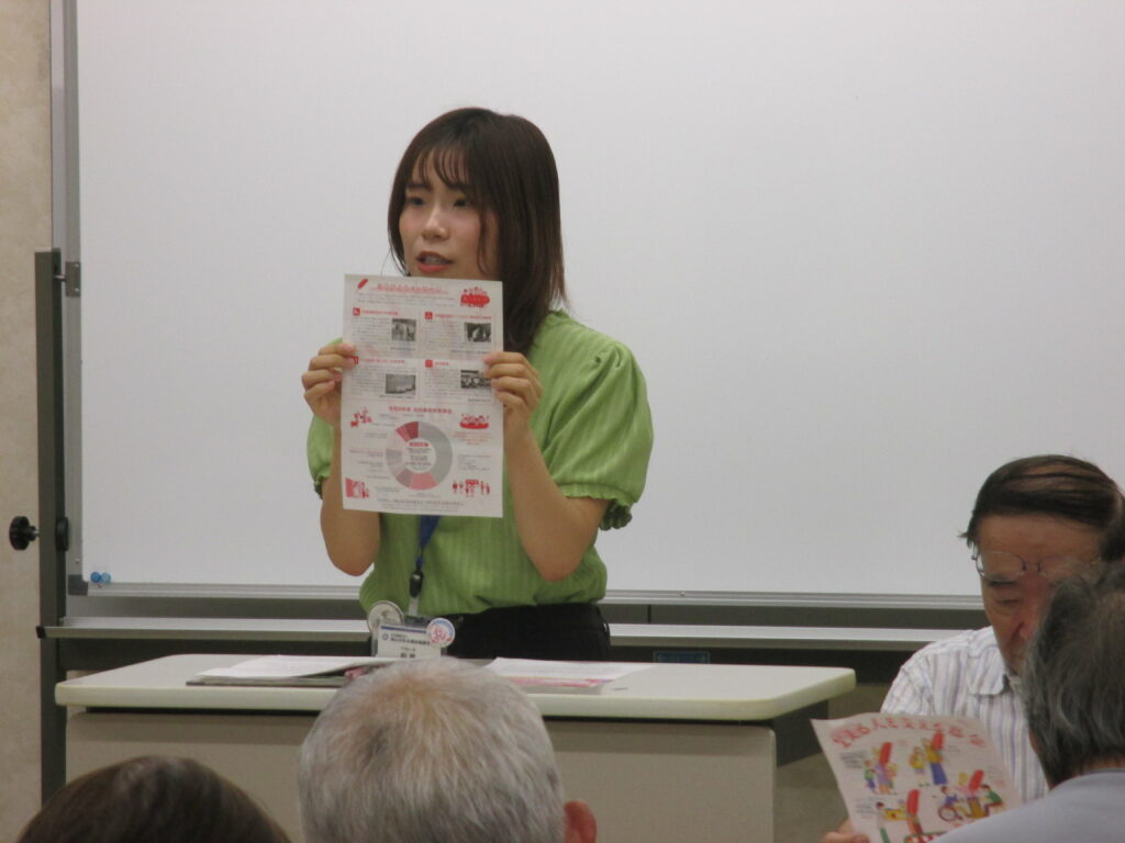 赤い羽根共同募金の説明を、岡山市社協より行いました。