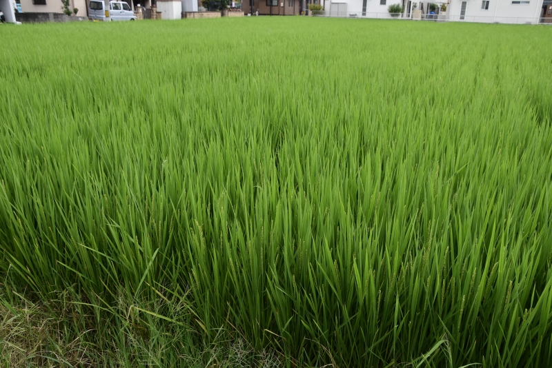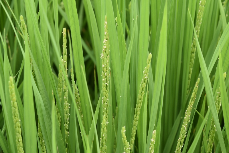 よく見ると花が咲いているように見えますが、稲の開花時間は数時間と非常に短いそうで、多くはすでに咲き終わっているようです。