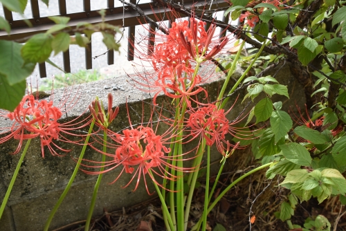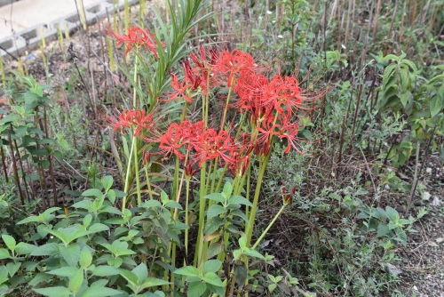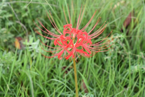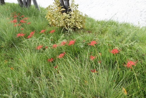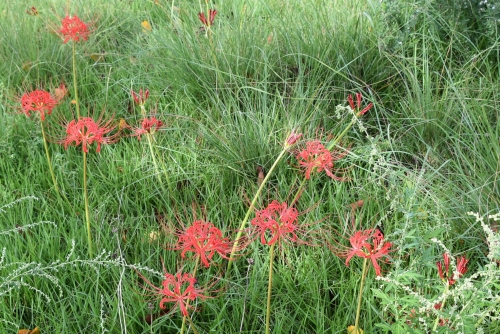 お彼岸の時期に咲くから「ヒガンバナ」、でも今年は暑さのためか開花が少し遅れたようです。