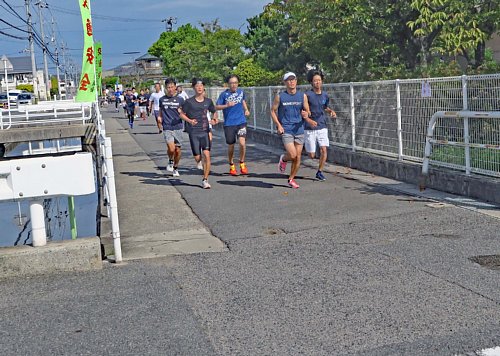 校門を出て一般道へ 中学校陸上部員やはり早い