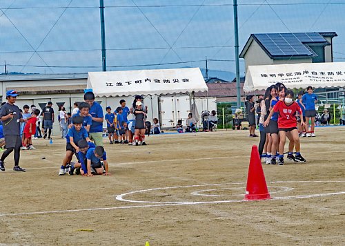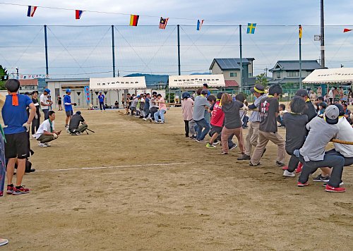 しかし、地区対抗競技などでは町内の声援を受け大いに盛り上がっていました。優勝は最後のメドレーリレーを制した黄(江並下)チームが逆転で昨年準優勝の雪辱を果たし、準優勝は青(藤崎上)チームでした。昨年まで4連覇中だった橙(桑野・沖元)チームは惜しくも連覇が途切れました。