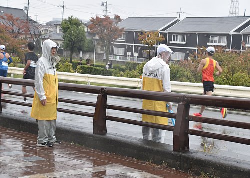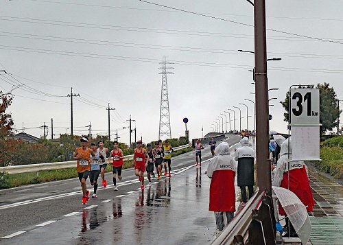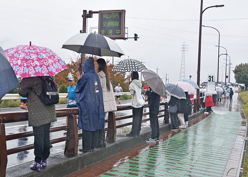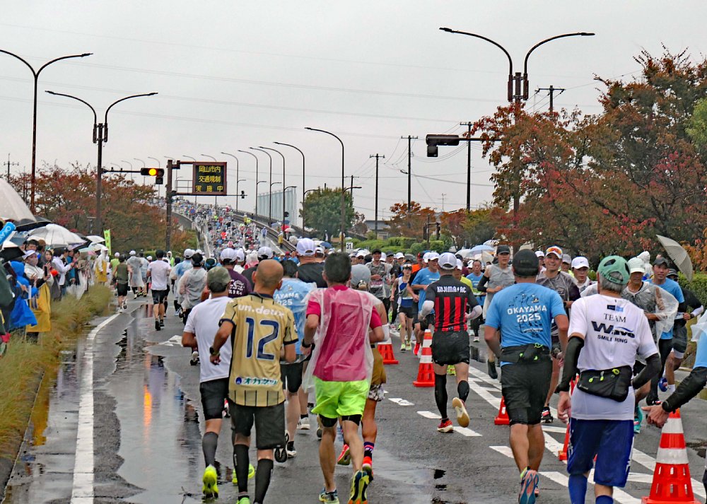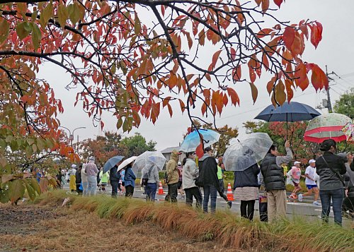 9回目となる岡山マラソンが小雨にけむる晩秋の岡山路を舞台に行われました。すっかり秋の恒例行事として定着した岡山マラソンに操明学区から26人が大会ボランティアとして参加しました。海外からの参加者を含め1万5千人のランナーが操明学区を駆け抜けて行く光景は例年どうりの迫力ですが、時折雨足も強くなるコンディションの中頑張って走るランナーに大きな声援を送りました。関門前で時間オーバーの為脱落し涙を流す人もいて悲喜こもごもの情景が見られましたが、岡山路を走り温かいもてなしを受けたことは一生の思い出になったとインタビューに答える人もいて肌寒い日でしたが大会運営に少しでも役に立てたことは嬉しい事です。