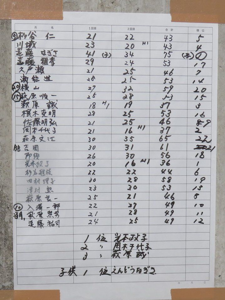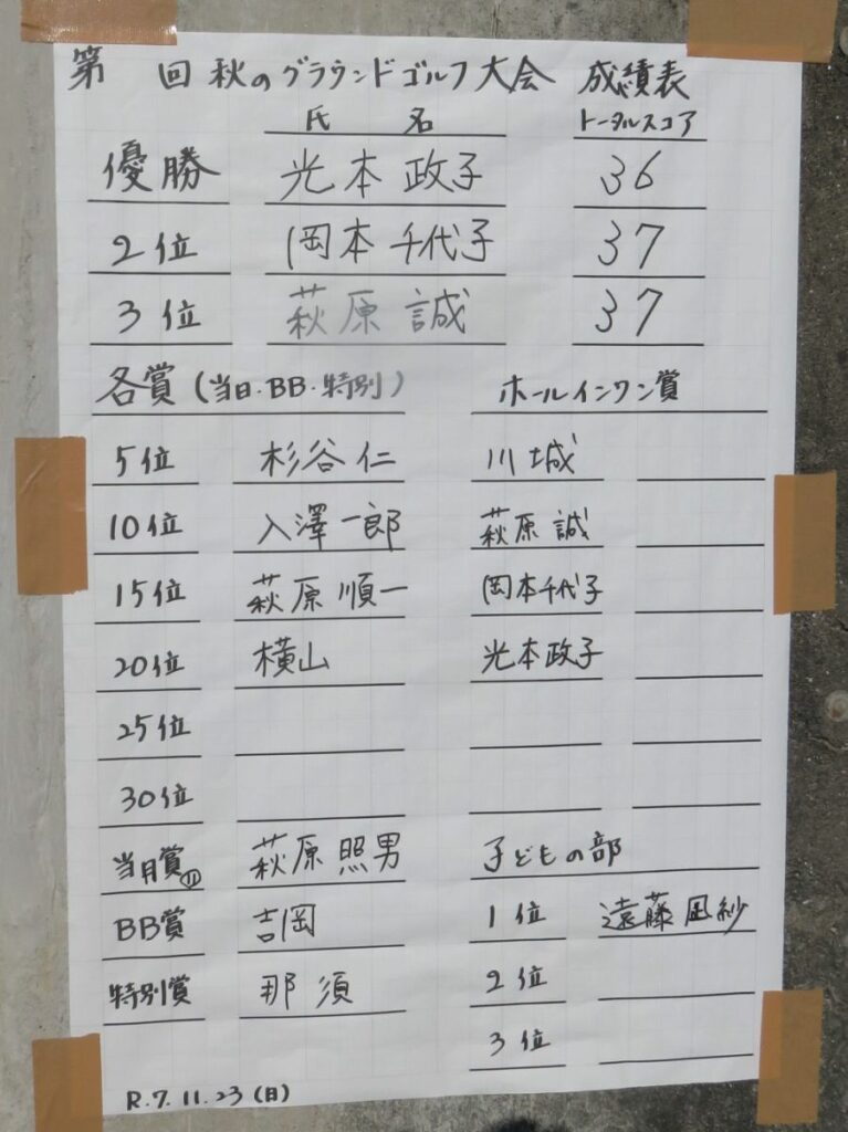 受賞者発表 グランドゴルフ同好会のメンバーが上位を独占 ホールインワンが効いてます