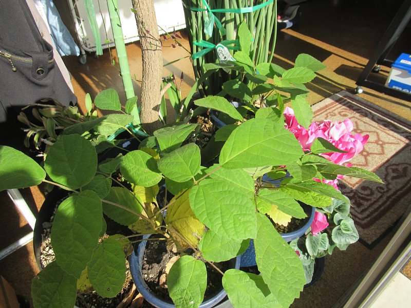 鉢植えですが、夏には外で葉っぱをつけます。(高さ3m程)一度だけ外でも花をつけた事があります。