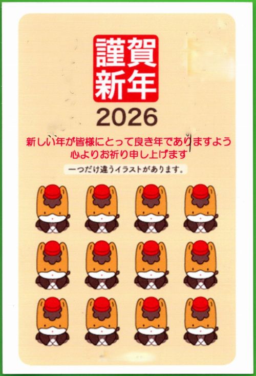 下の7枚の年賀状は、電子町内会委員・役員から寄せられた「ユニークな、あるいはこれは?と思う年賀状」です。近年、年賀状が次第に少なくなっていて、該当する年賀状を選ぶのがむずかしかったとかで、今年は少数しか寄せられませんでした。