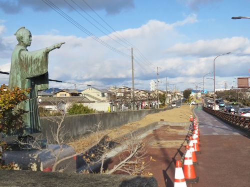 今から34年前、当時はまだ操南学区だった平成4年に大橋が開通して以来の大規模工事です。今回の工事により車道の予定用地に植樹されていた樹木が伐採されることになりました。さくら祭典北から岡南大橋に向けての道路両側の桜の木は春の満開時には地域住民やドライバーの目を楽しませ、百間川の桜並木とともに学区の名所ともいえる有数の景観となっていました。現在車道北側は先行して樹木伐採が行われましたが、南側については今春の桜の花が散った後に伐採するようです。時代の流れとともに移り行く景観ですが、今年が見納めとなる桜を最後に楽しみたいものです。