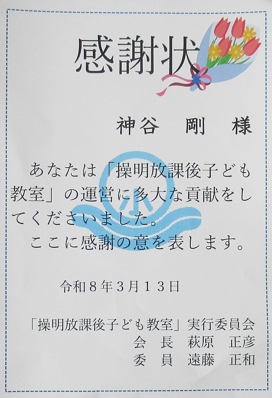 R7年度の操明放課後子ども教室の年間36日の開催が終わり、参加者121名の子ども達が地域のボランティア先生21名の指導を受けました。