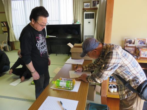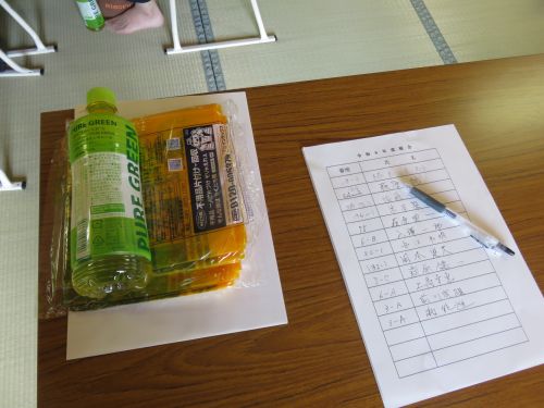 資料とお茶ゴミ袋(小2袋)を受け取る