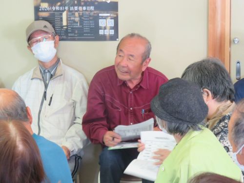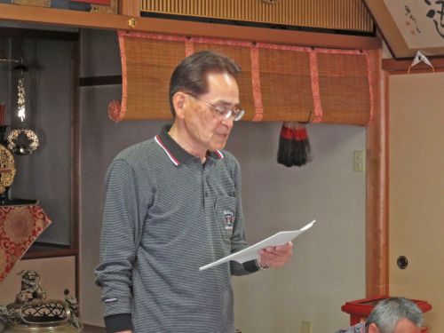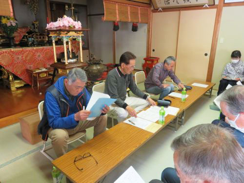 4月12日(日)江並真宗寺において中用水町内会総会が開かれました。今年は役員改選の年で初の女性副会長が誕生するなど新体制が承認されました。新会長から役員の高齢化や成り手不足といった課題に対応するため27名の班長さんにも可能な限りの協力を求め、ブロック別に副会長を補佐し地域の見守りや環境美化をなお一層進めて行きたいと力強い決意表明がありました。会員から色んな意見や提案があり実り多い会となりました。これまで先輩たちが築いてきた中用水の良き伝統を受け継ぎ、皆で力を合わせこれからも自助・共助を心掛け思いやりのある住みよい町になることを願います。