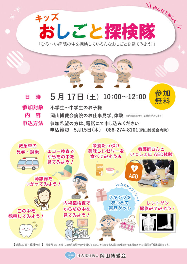 【5/17開催】岡山博愛会病院「キッズおしごと探検隊」のご案内