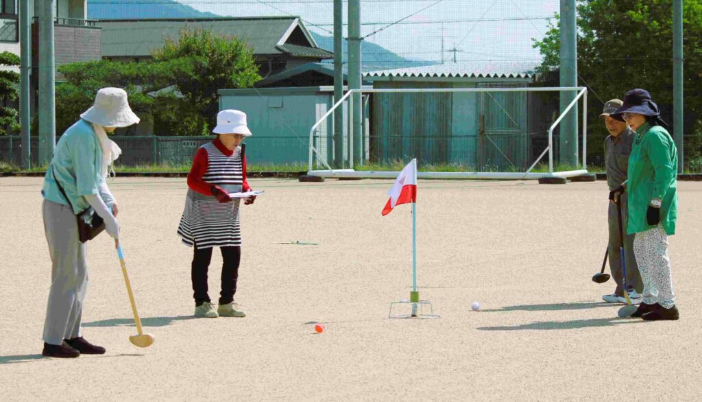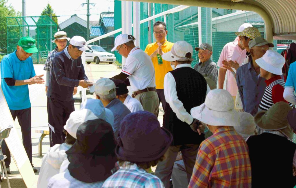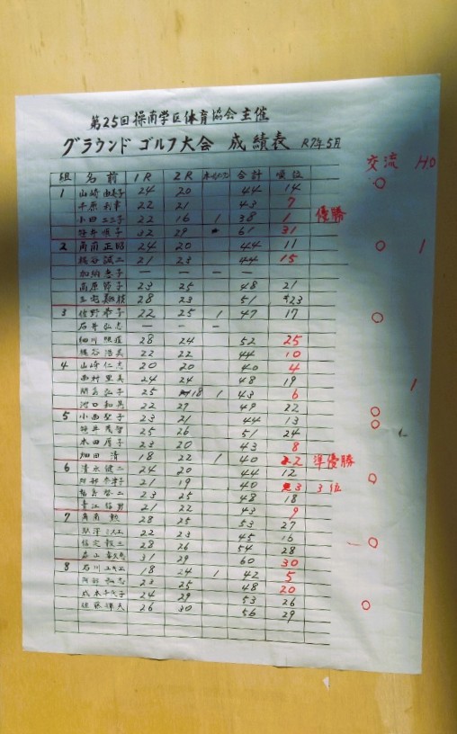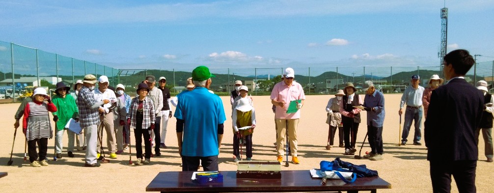 5月28日(水)8時半、桑野スポーツ広場にグランドゴルフ愛好者32名が集い日頃の健康維持・練習の成果を競いました。快晴の夏日のプレーとあって30分毎に水分補給の休憩を取りながら全員元気にホールアウトしました。4000歩近くを刻むプレーを完遂された参加者の皆さんの笑顔が素敵でした。スポーツを通じて仲間どおしのふれあいが拡がる場です。未だやったことのない人も気軽に参加されては如何でしょう。当日大会運営を取り仕切られた片山勝昌様ご苦労様でした。