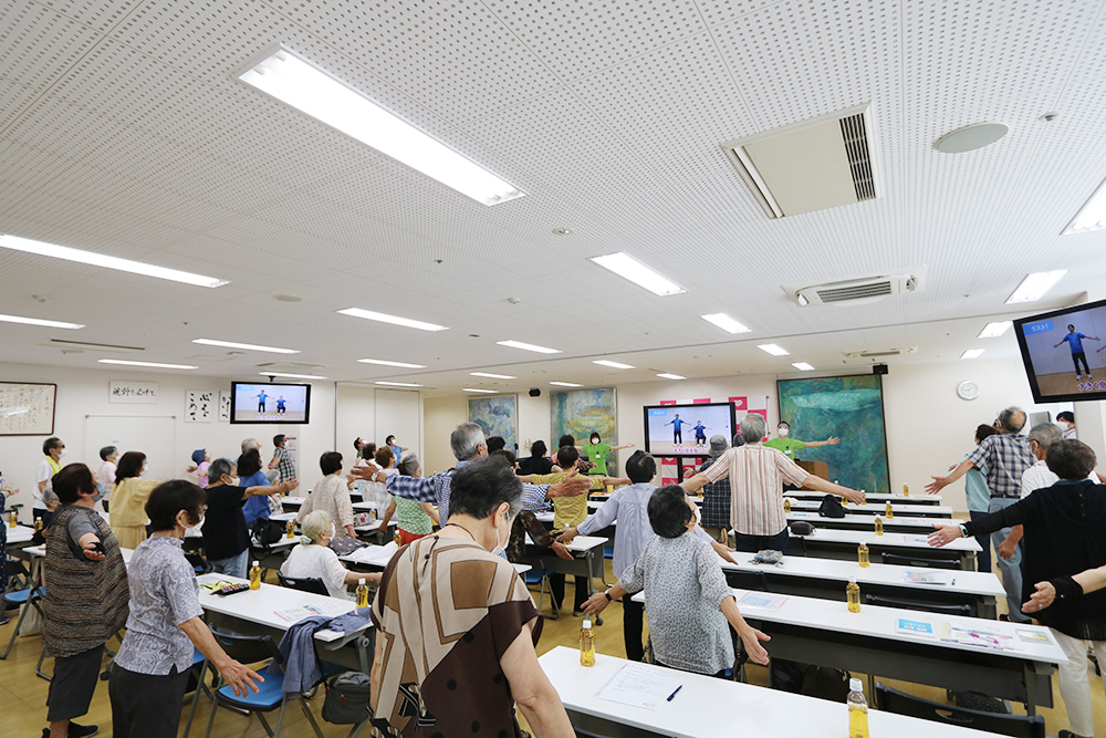健康運動指導士が体操の見本となり、声掛けやポイントを確認しながらはつらつと楽しく行いました!