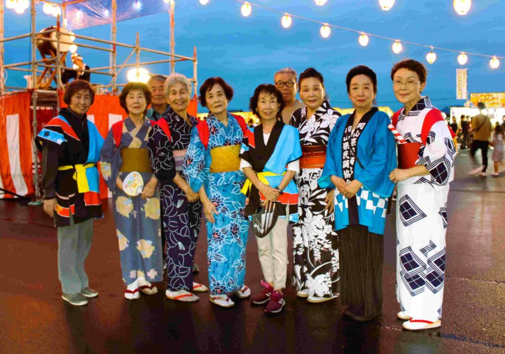 8月11日(月)祝日の夜岡田商運新本社で盆踊りが実施されました。17時の開始時間近くまでパラついていた雨も上がり涼しさが戻ってきた会場には多くの地域の人々が集いふれあいの環が拡がりました。操南学区からも踊り連が参加盆踊りを披露、操明の方々との交流が持たれました。操南学区連合町内会役員の方も近藤会長以下多数参加され、6年振りのふれあい祭り開催に向け地域の期待に応えようとの気持ちを強くされました。又来年も盛大に盆踊り大会が実施されるよう支援協力をしなければとの思いも! OkaaSyoの皆さんお世話になりました。