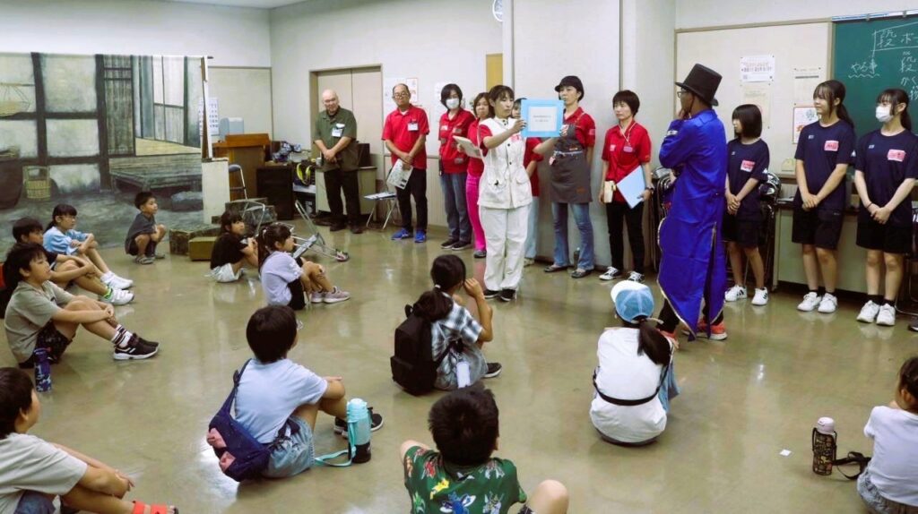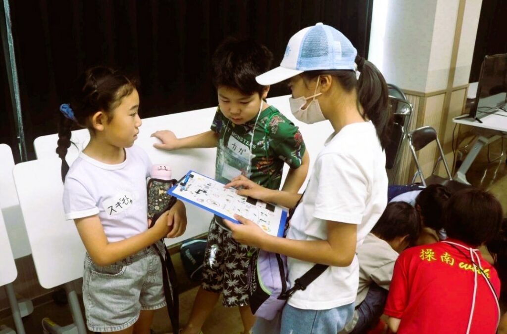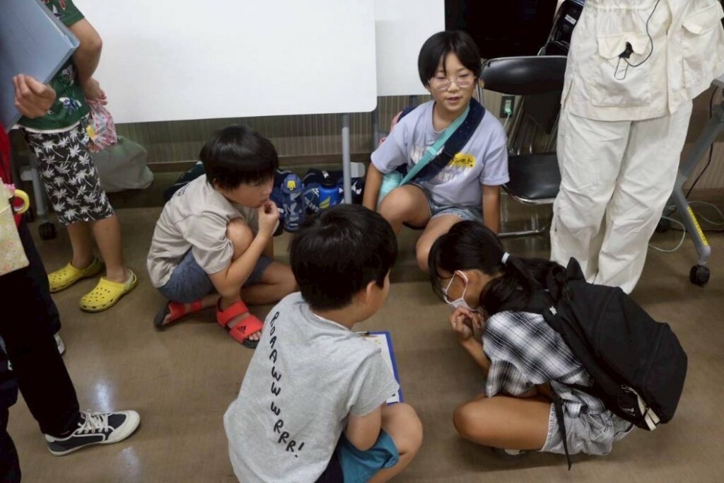 8月21日(木)10時~12時、操南公民館で地域応援人づくり講座(操南with、岡山市民協働局総務課、操南公民館主催)が開催されました。対象は小学生、防災パーティーの参加者に扮し「パーティー開始の1時間前に必要な●●が盗まれた」との状況におかれます。犯人、●●を見つけ出す為謎解きに挑戦、それには自由な発想・ひらめきが必要、謎解きを通じて防災知識が体得できるよう考えられています。15名が参加、4班に分かれる際も兄弟・知人が同一班に属さないよう編成(災害避難時を想定すれば見知らぬ人との避難行動も起こりうることから)、班別に競い合いながら公民館5ヶ所に仕掛けられた謎を解きながら犯人を特定、●●を見つけ出し無事パーティーの開催にこぎつけました。公民館熊代様のストーリー・謎づくり、操南with・公民館長の演出、操南中ボランティアの支援が相まって小学生15名にとっては楽しく防災知識を習得できる場となりました。この情報・写真は操南with 笠松様から頂きました。