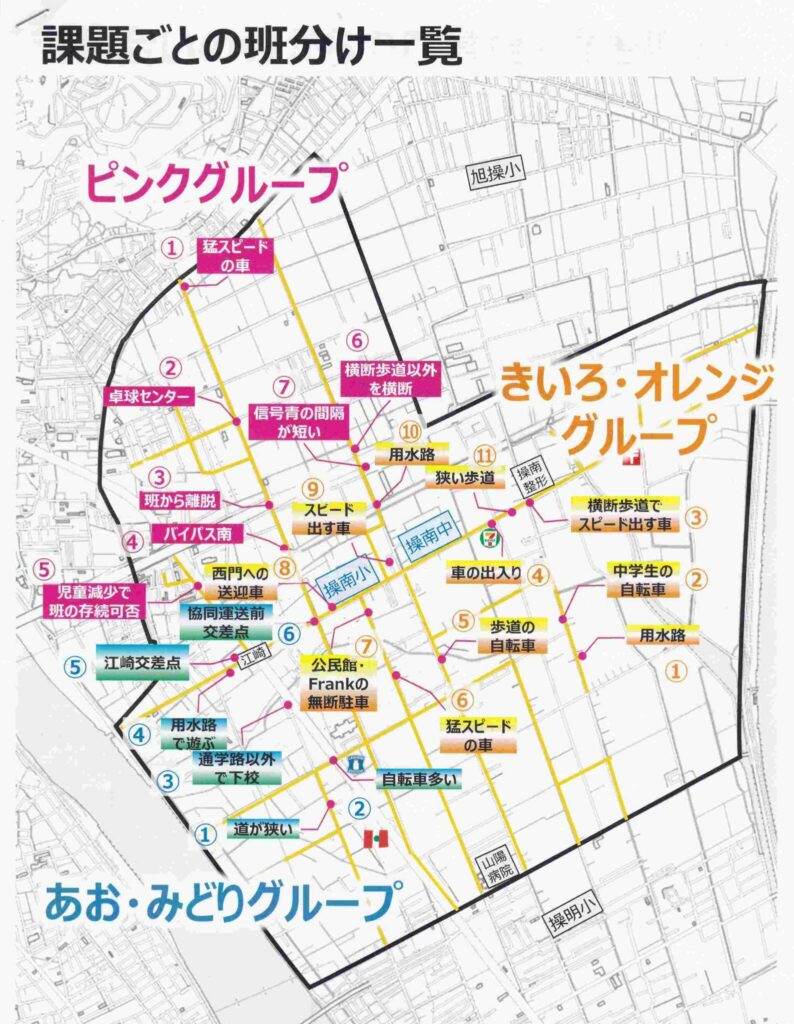 意見交換を通じて次の目標(ゴール)が予め設定されていました。 PTA、地域(町内会・各種団体)が出来ることの明確化  道路の修繕、標識設置などの要望の出し方を知る  各班における旗当番、見守り活動の実施状況の共有。