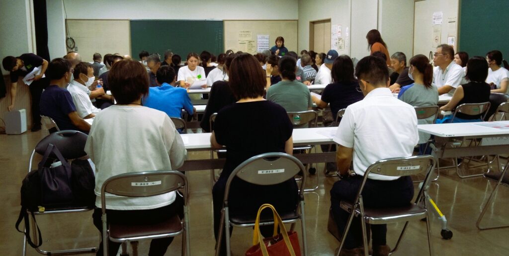 8月29日(金)19時から公民館に於いて操南小学校児童の登下校見守りに関わるPTA、町内会、各種団体の意見交換会が開催されました。新学期が始まったこの日多くの関係者が集い予め提出された課題(危険・要改善箇所)が地区ごとに整理され当該町内会長・PTA・団体役員が対処法について話し合いました。冒頭小学校永井校長から謝辞と支援のお願い、近藤連合町内会長から身近に危険があり安全確保に向けた取り組みが必須との挨拶がありました。課題ごとに3組に分かれ意見交換が行われました。