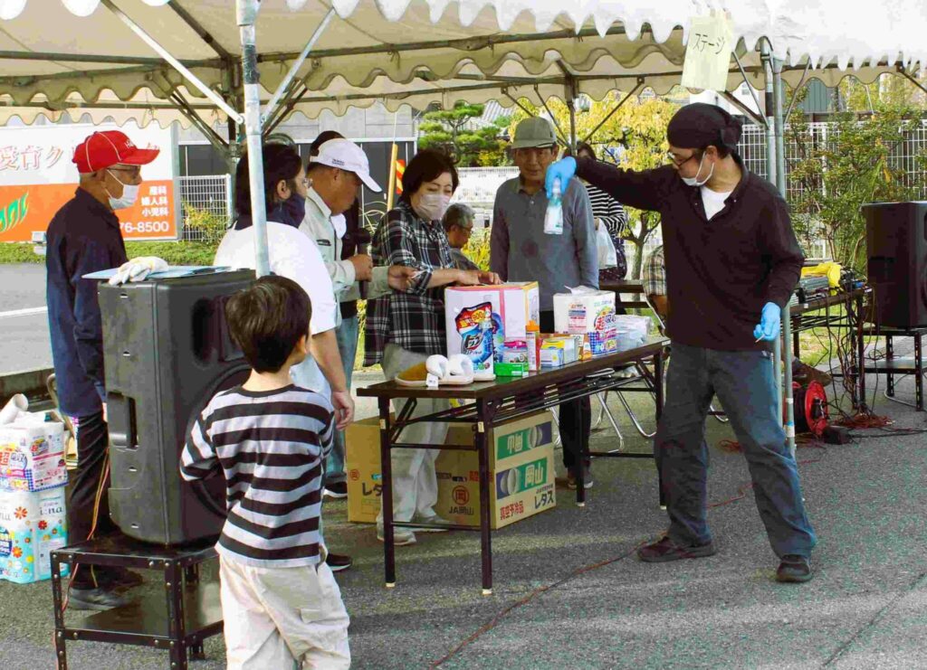 10月19日(日)昼過ぎから恒例の倉田中島町内会(国方会長)の秋祭りが開催されました。前夜からの雨が朝方まで降り開催が心配されましたが天気が回復し会場のリハビリテーション病院駐車場には多くの家族ずれの人々が集まり祭りを楽しんでいました。祭り実行委員のみなさまご苦労様でした。