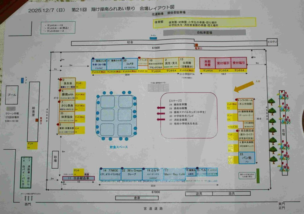 1 開催日時:12月7日(日) 10時~15時 (9時~10時 PTA主催のクリーン作戦、その後祭り開始) 雨天の予測される場合12月5日(金)正午に中止の判断をします。操南学区連合町内会HPでお知らせします。