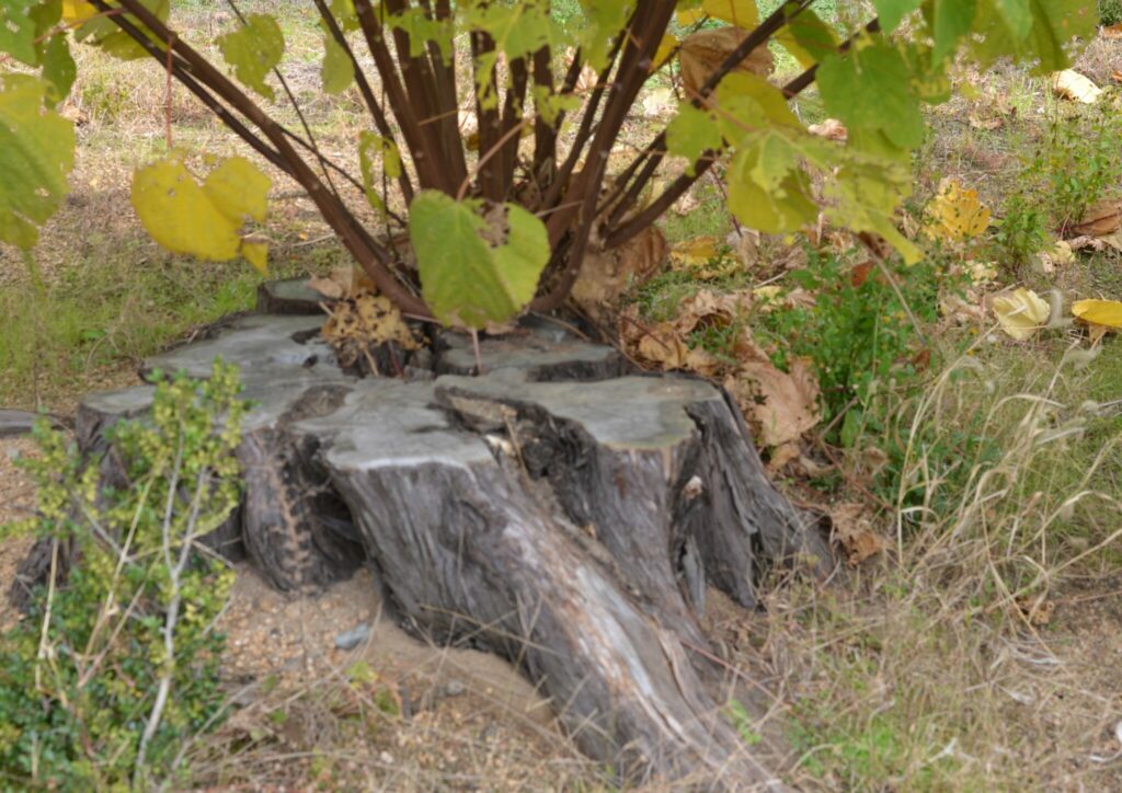 先年碑の建立時に植栽された樹木が伐採され現在は大きな木は無く