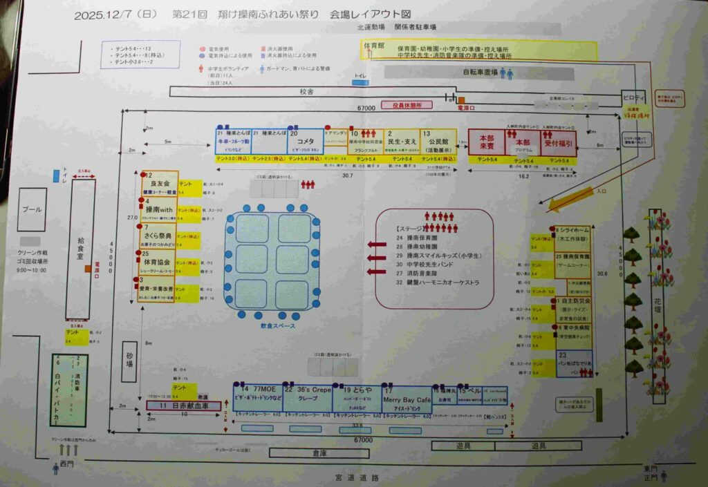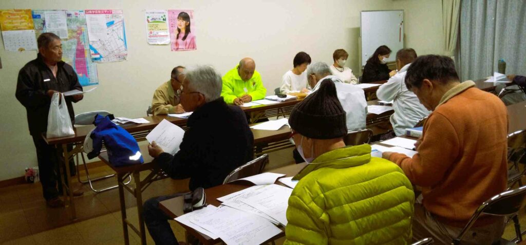 12月7日の天気は快晴、寒さも和らぎ好天が予想されます。当日は小学校のクリーン作戦が9時から行われ10時前には終了、10時からふれあい祭りのオープニングとなります。12月1日(月)18時30分~21時過ぎまで祭り運営にあたる各班責任者が入念な打ち合わせを行いました。今回が4回目の会議となり祭り運営に向け準備は整いましたが一部懸念点、お願いが提示されています。