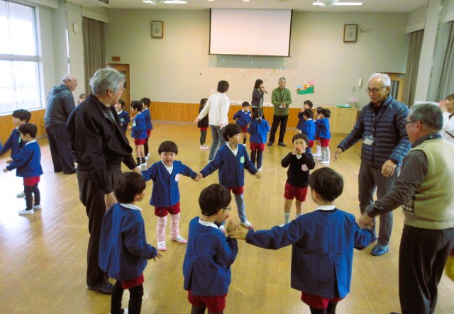 12月17日(水)9時から遊戯室で園児(年長・年中組)がお世話になった地域の方に感謝する会が催されました。春の夏野菜植え付け、田植え、収穫、草刈り等の行事を振り返り、クイズ(年中組は夏野菜何を植えた?稲の苗は誰が持ってきた?七夕の笹は誰が?等々)を交えながら記憶を蘇らせました。その後園児と輪になって地域の方もダンスに挑戦、躍動する園児の動きを頼もしく感じながら楽しい時間を過ごしました。この情報・写真は操南幼稚園(藤田園長)から頂きました。