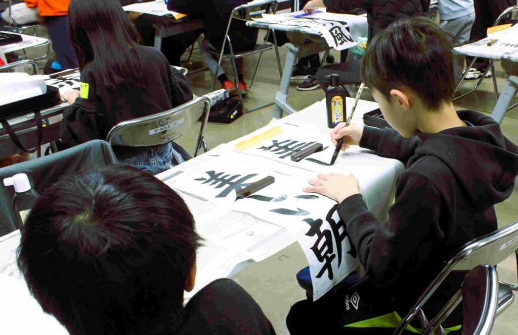 書初め開始 操南with幸坂さん