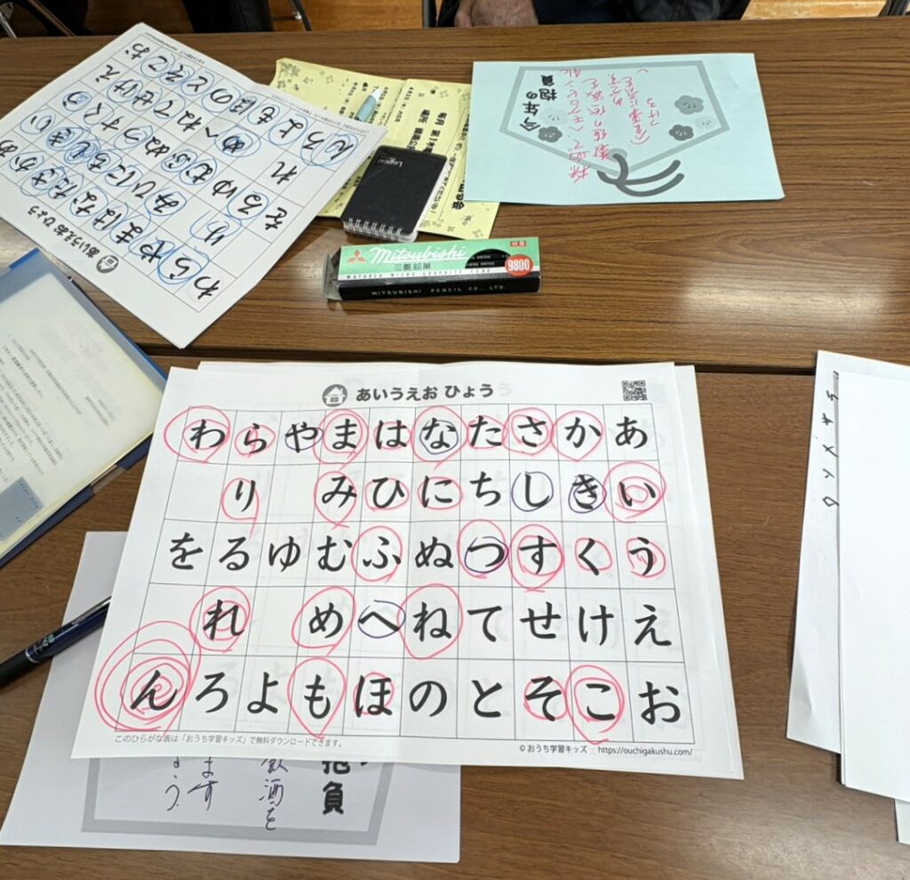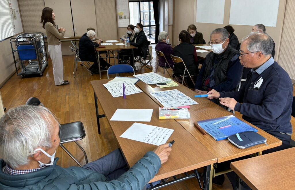 元気の出る会(片山会長)は2月5日(木)操南公民館で2月度の例会を開催しました。今回は頭脳の働きを高めようと想像力・敏捷性向上を狙ったゲームに挑戦しました。岡山市社会福祉協議会から栁瀨様の指導を頂き「あいうえお表」から色々の物の名称を拾い上げその多少を競うというものです。焦れば焦るほど名前が浮かんでこないこのプロセスが脳の活性化につながるようです。皆さん困惑しながらも一生懸命取り組まれていました。その後各自が今年の抱負を絵馬に書き発表、一様に元気に長生きする為の努力目標が述べられました。最後に青春時代に唄った懐かしい歌を合唱、来月の再開を約し散会しました。この情報は操南社協 国方副会長から頂きました。