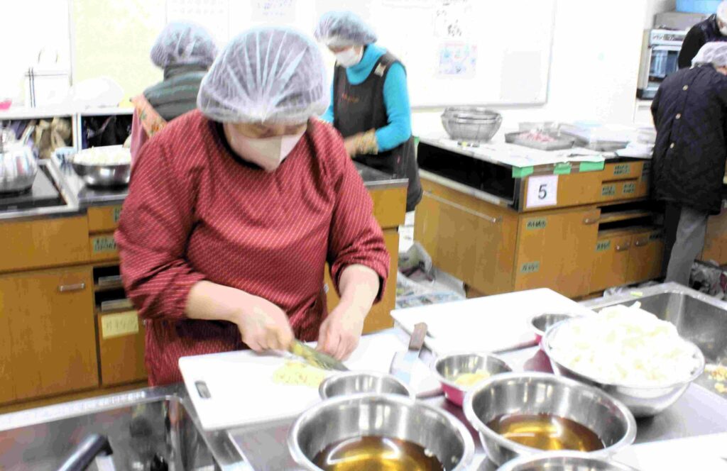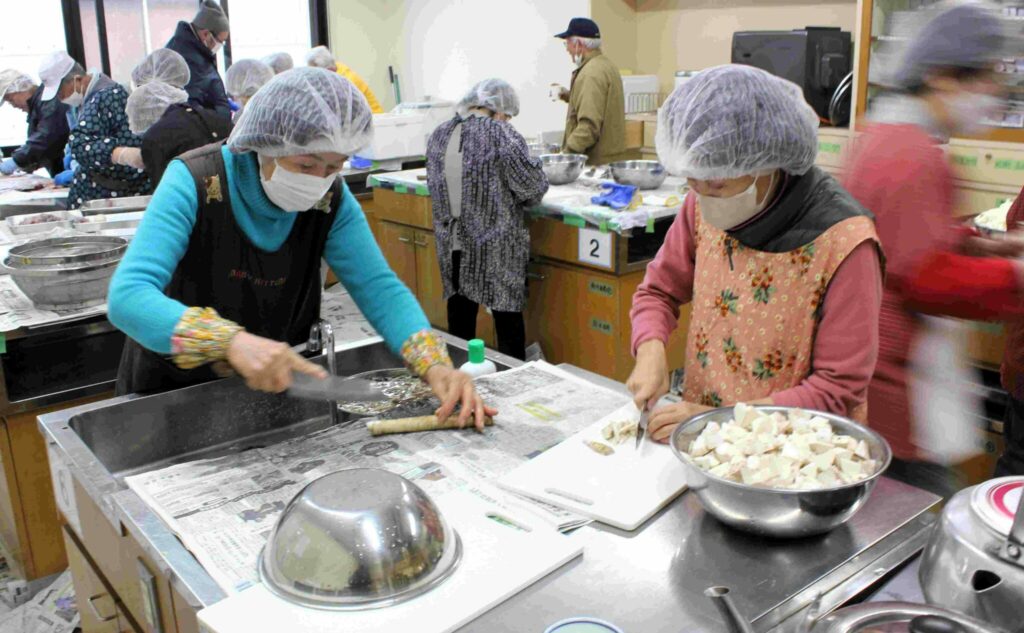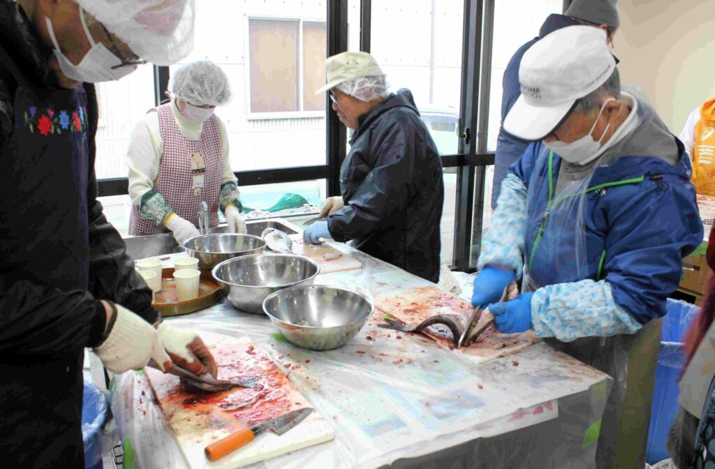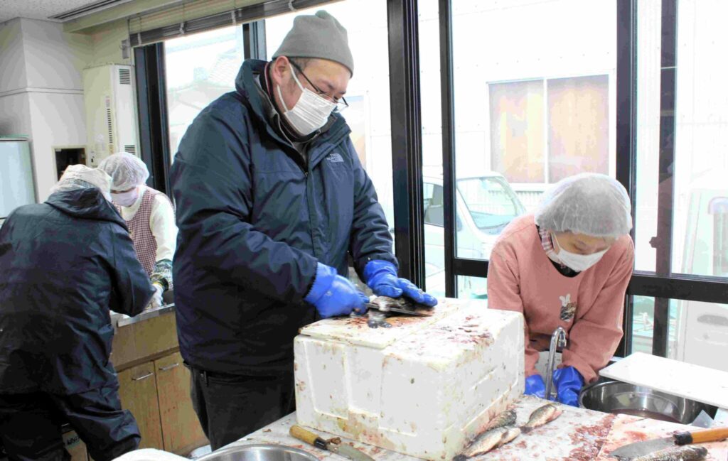 岡山県南に伝わる郷土料理でこの地域でも真冬によく食べられていた懐かしの味を賞味する場が今年も2月7日(土)操南公民館で持たれました。(令和7年度 操南公民館・操南学区栄養改善協議会 共催) 朝早く百間川で獲れた寒鮒が公民館に搬入され栄養改善協議会・ボイランティアの方が鮒をさばきミンチに加工、野菜と一緒に炊き合わせ旨いふなめしに調理、会場の公民館2階につめかけた方々にふるまわれました。運営には操南中学学生ボランティアの力を借りクイズで地域をより知ろうとの取り組みがありました。