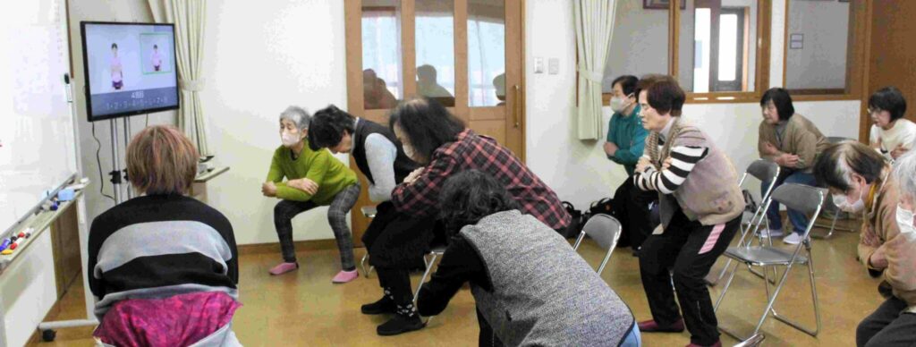 毎週木曜日14時からコミュニティハウスで開催されているあっ晴れもも太郎体操に参加させて頂きました。B会議室に20名近い方が集まりDVDに収録されたあっ晴れもも太郎体操の再生画面を見ながらストレッチ・お口の体操・筋トレを行いました。トレイニングの後の皆さんの明るい表情が印象的でした。お近くの方参加されては如何でしょう。