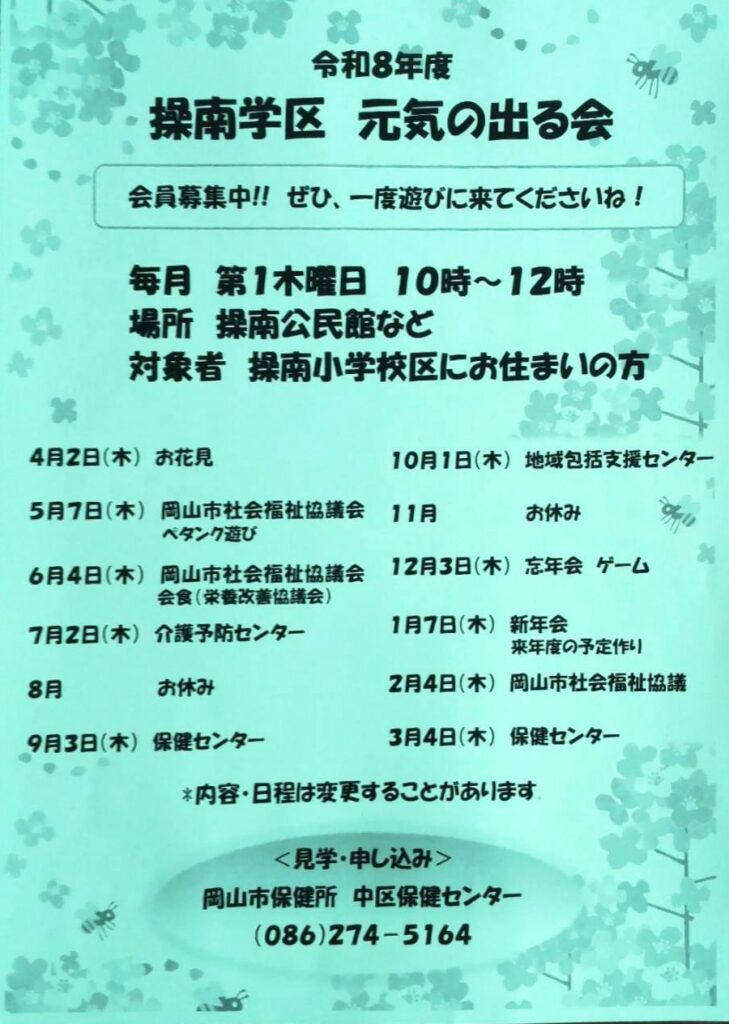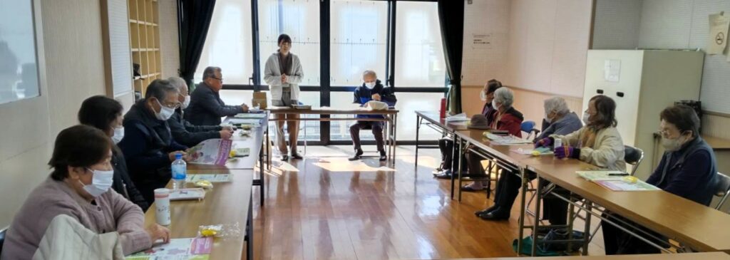 3月5日(木)公民館で「元気の出る会」(片山会長)例会が開催されました。最初に岡山市保健センター保険技師河野から「ストレスをためない生活」のお話を聞きました。参加者からは「カラオケで大声を出す」「ウオーキング」「買い物」等のストレス解消法が披露されました。引き続き河野様の指導のもと 無理をせず、できる範囲で「筋力トレーニング」で身体を動かせました。日常に取り込みストレス解消~健康維持に努めたいものです。来月はお花見を楽しみに再開を約し散会しました。この情報・写真は社会福祉協議会島田様から頂きました。