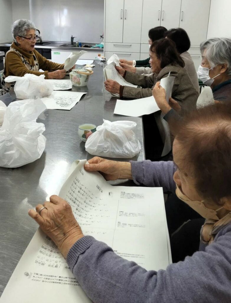 3月15日(日)午後コミュニティハウスで沖楽サロン(塩飽会長)「お楽しみ会」が開催されました。先回の予告通りスタッフ手作りの「春のいなり寿司」を頂きながら歓談、コーヒーの後は脳の活性化や口腔機能の維持に役立つ「早口言葉」「手指の運動」に挑戦、ストローを使ったマジックにも取り組み笑いの輪が広がりました。新たな取り組みで疲れた後は若き日の沖新田の暮らしぶりを懐かしく語り合いました。この情報・写真は沖楽サポーター・民生委員の島田様から頂きました。